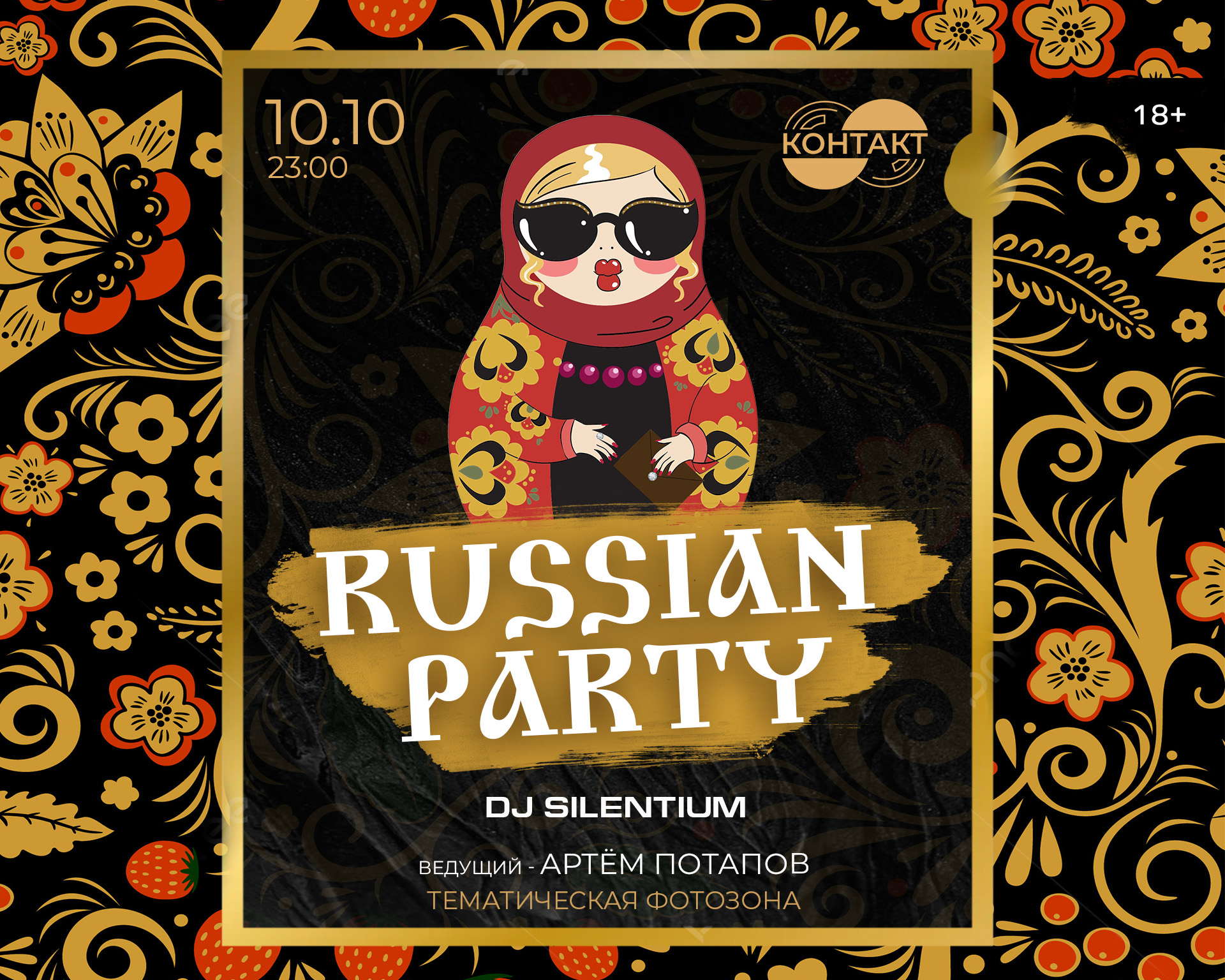 10Окт11:00 вечера4:00 утраВечеринка "Russian Party" в клубе "Контакт" с DJ SilentiumВход свободный